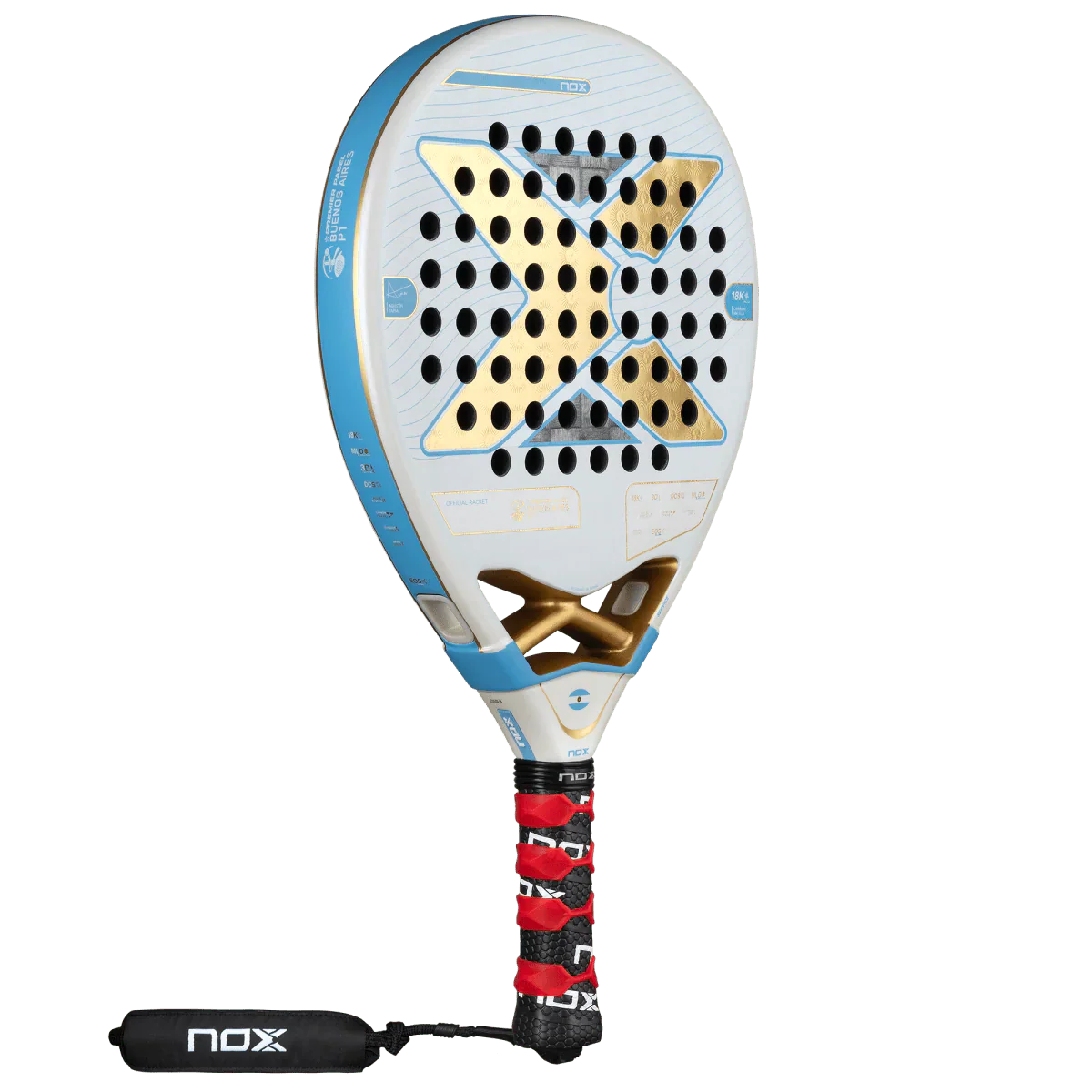 La nueva AT10 Luxury Genius 18k Alum Buenos Aires Edition eleva el listón del diseño y la innovación, evolucionando la pala con la que AgustÃn Tapia alcanzó la cima del pádel mundial con un nuevo molde. Este año el violÃn del Mozart de Catamarca incorpora el revolucionario sistema de contrapesos Weight Balance, que permite ajustar el balance de la pala a tu estilo de juego, ofreciendo una experiencia 100% personalizable. La nueva superficie Dual Spin combina textura 3D y acabado en arena de sÃlice en toda la cara de la pala, maximizando la generación de efectos.