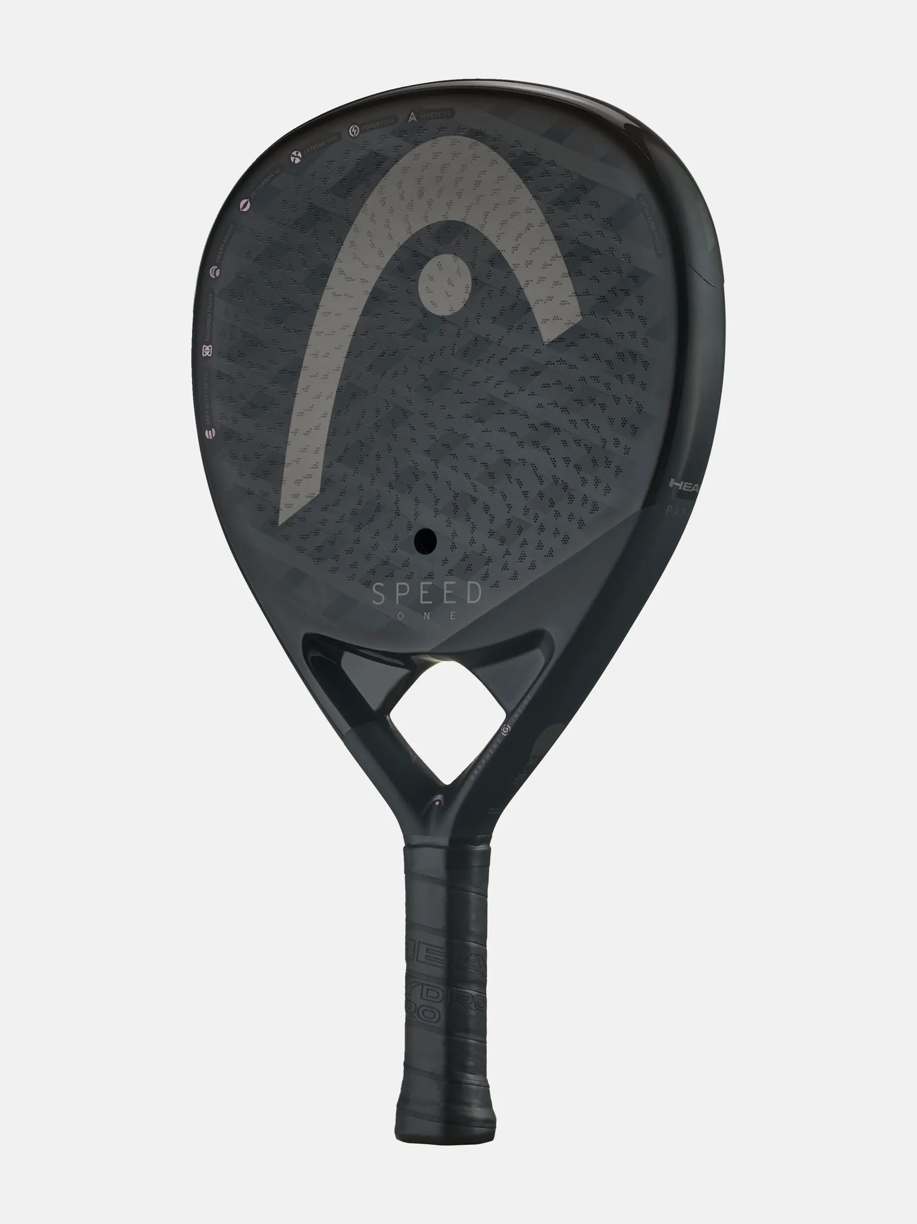 La HEAD SPEED ONE es una pala lágrima ligera (345 g) pensada para jugadores avanzados que quieren acelerar el juego con una mezcla muy sólida de potencia, control y manejabilidad. Incorpora la tecnologÃa ONE y una superficie de golpeo en carbono 2D, que le dan una rigidez extra, durabilidad superior y potencia explosiva. La nueva Auxetic 2.0 (en puente y empuñadura) mejora brutalmente el tacto y la sensación en cada impacto, mientras que la goma Power Foam responde rápido en golpes ofensivos. La cara con acabado Extreme Spin añade más agarre de pelota para cargar de efecto tus golpes, y el Soft Butt Cap 2.0 en el final del grip aporta mayor comodidad, absorbe vibraciones y cuida la muñeca. Todo esto en un diseño moderno y premium con acabados mate y brillo.